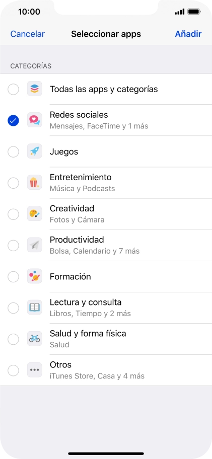 Configura el límite de tiempo deseado para el uso de la categoría seleccionada.