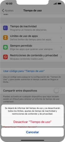 Pulsa Desactivar "Tiempo de uso".