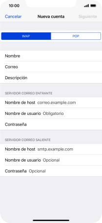 Pulsa Nombre de host e introduce el nombre del servidor de correo de entrada de tu proveedor de correo electrónico.
