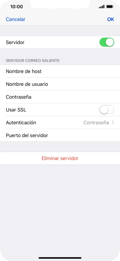 Pulsa el indicador junto a "Usar SSL" para desactivar la función.