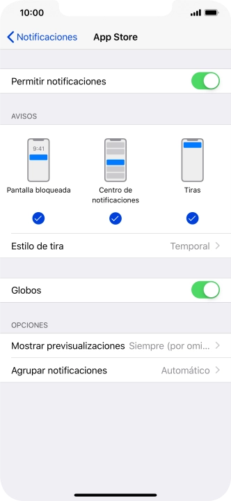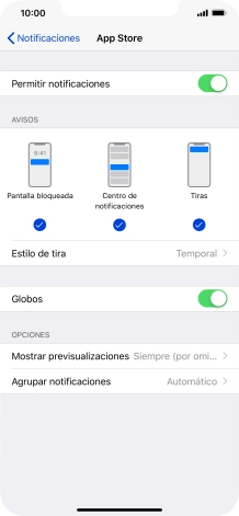Selecciona el ajuste para la vista previa de las notificaciones