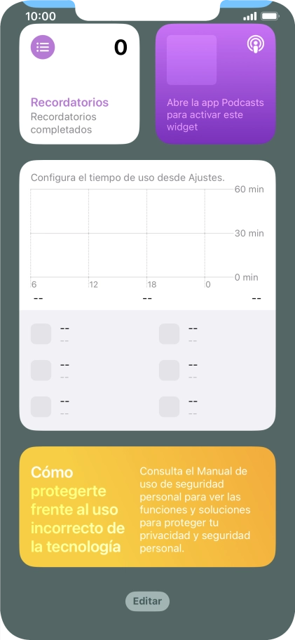 Si utilizas un grupo de widgets: Desliza el dedo hacia arriba o hacia abajo sobre el grupo para seleccionar el widget deseado.
