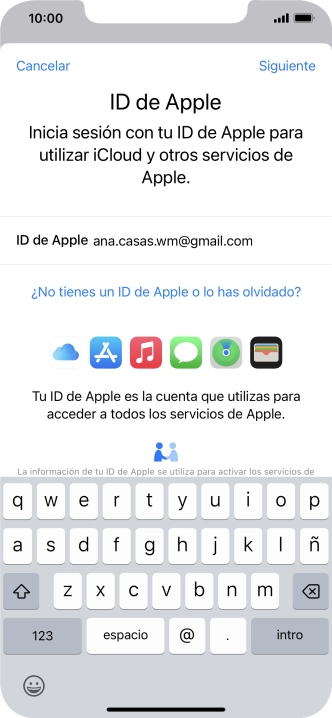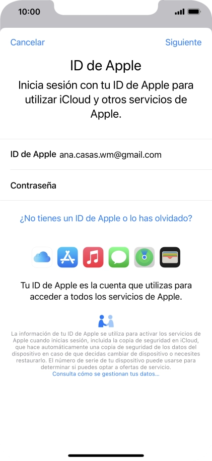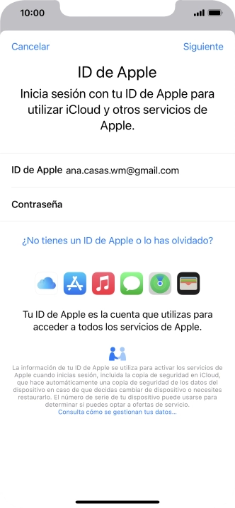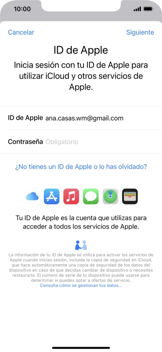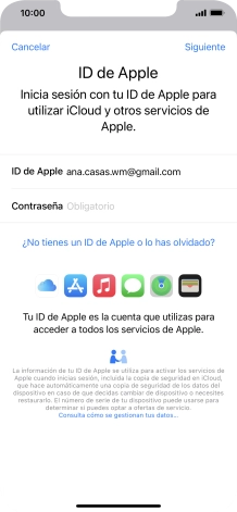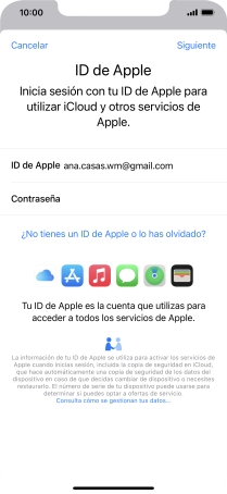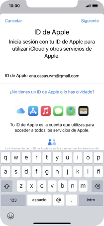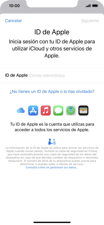 Si no tienes un ID de Apple, pulsa ¿No tienes un ID de Apple o lo has olvidado? y sigue las indicaciones de la pantalla para ver cómo crear un ID de Apple.