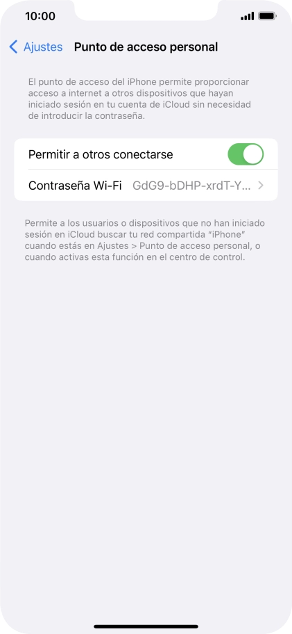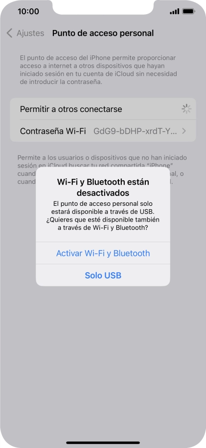 2 Introduce la contraseña del punto de acceso personal