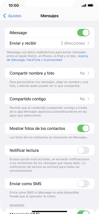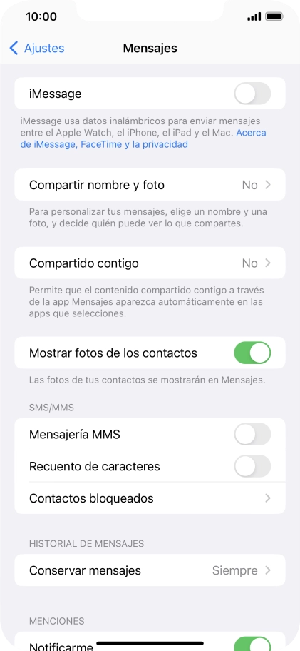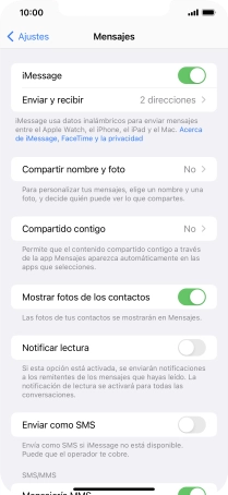 Si activas la función, los iMessages se enviarán como mensajes cortos normales en caso de que este servicio no esté disponible.