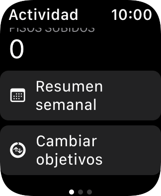 Sigue deslizando el dedo hacia arriba y sigue las instrucciones de la pantalla para consultar la vista de la actividad de la semana en curso o para adaptar los objetivos de la actividad diaria.