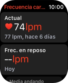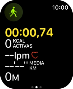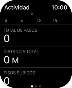 Seguir deslizando el dedo hacia arriba para ver el número de pasos, la distancia y los pisos que se ha andado.