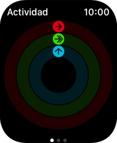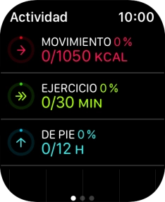 En la pantalla aparece lo que queda para alcanzar los objetivos diarios de actividad. Cuando los círculos de color se cierran, se han alcanzado los objetivos diarios de actividad.