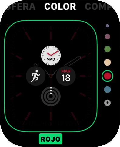 Deslizar el dedo hacia la izquierda desde la parte derecha de la pantalla para ver más opciones de personalización del reloj.