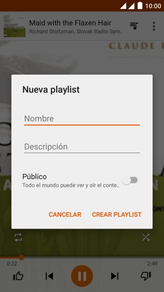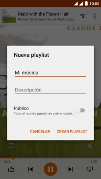 Introduce el nombre deseado de la lista de reproducción y pulsa CREAR PLAYLIST.