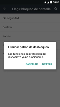 Introduce el código de seguridad actual y pulsa Sin seguridad.