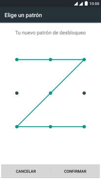 Desliza el dedo por la pantalla para unir por lo menos cuatro puntos y pulsa CONTINUAR.
