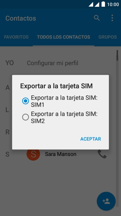 Pulsa Exportar a la tarjeta SIM.