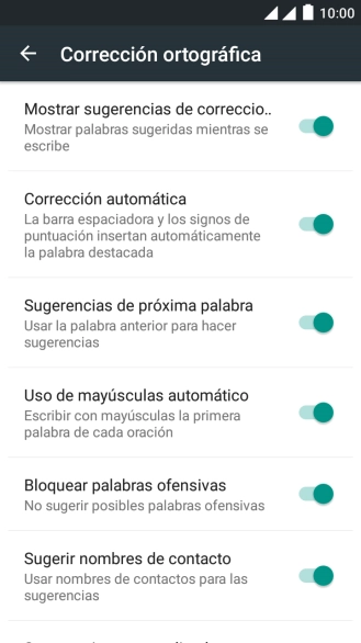 Pulsa el indicador junto a "Sugerencias de correcciones" para activar la función.