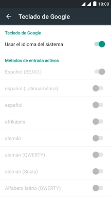 El idioma de escritura seleccionado determina qué caracteres puedes introducir y qué idioma se utiliza para la sugerencia de palabras.