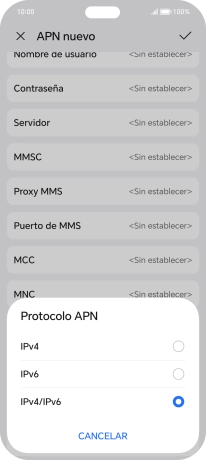 10. Selecciona el protocolo del punto de acceso (APN) en roaming