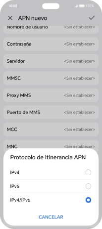 10. Selecciona el protocolo del punto de acceso (APN) en roaming