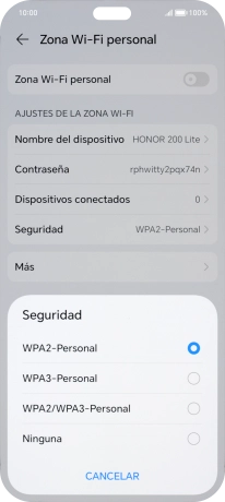 Pulsa WPA3-Personal para proteger la conexión wifi con una contraseña.