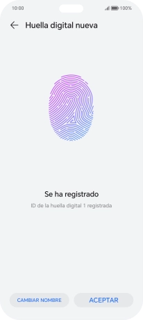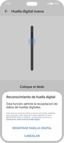Sigue las indicaciones de la pantalla para crear una huella digital como código de seguridad.