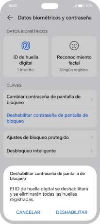 Pulsa Deshabilitar contraseña de pantalla de bloqueo e introduce el código de seguridad extra que has creado anteriormente.