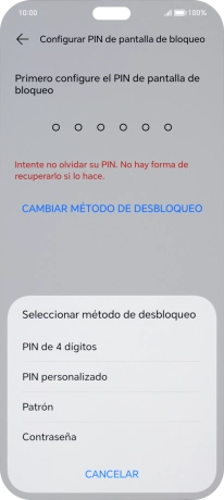 Pulsa CAMBIAR MÉTODO DE DESBLOQUEO.
