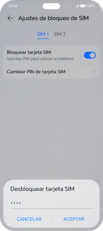 Pulsa el indicador junto a "Bloquear tarjeta SIM" para activar o desactivar la función.