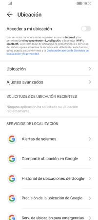 Pulsa el indicador junto a "Acceder a mi ubicación" para activar o desactivar la función.