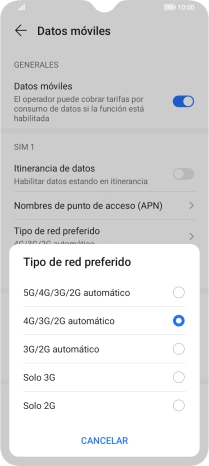 Puede haber diferentes tipos de red disponibles, dependiendo del lugar donde te encuentres. Si seleccionas la conexión automática con la red de mayor velocidad, tu teléfono siempre se conectará a la red de mayor velocidad disponible en cada momento