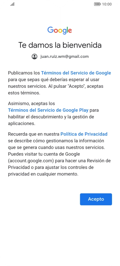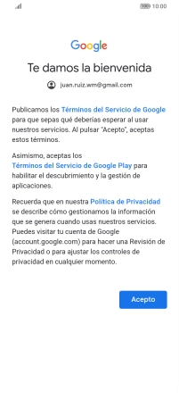 Pulsa Acepto y sigue las indicaciones de la pantalla para seleccionar los ajustes de tu cuenta de Google.