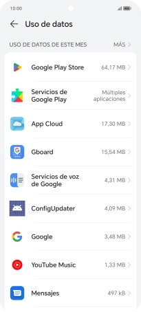 Y el consumo de datos de cada aplicación aparece junto a ellas.
