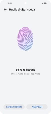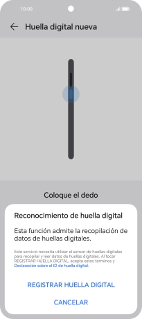 Sigue las indicaciones de la pantalla para crear una huella digital como código de seguridad.