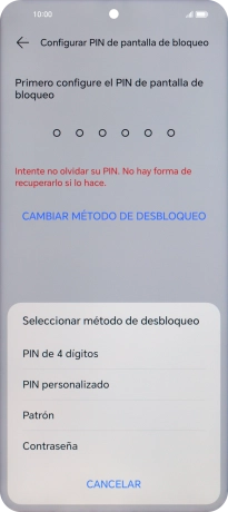 Pulsa CAMBIAR MÉTODO DE DESBLOQUEO.