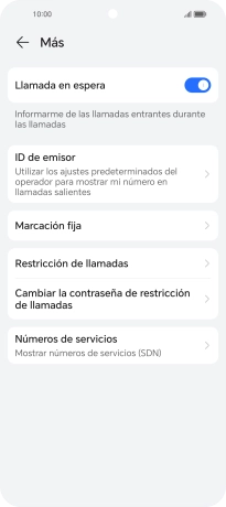 Pulsa el indicador junto a "Llamada en espera" para activar o desactivar la función.