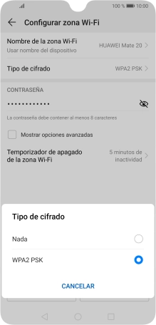 Pulsa WPA2 PSK para proteger la conexión wifi con una contraseña.