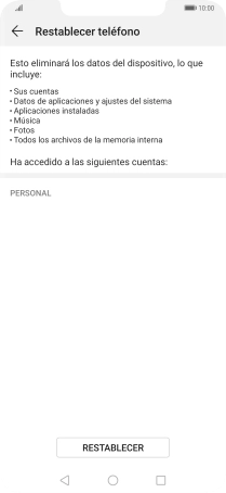 Pulsa RESTABLECER. Espera unos instantes mientras el teléfono restablece la configuración predeterminada. Sigue las indicaciones de la pantalla para configurar el teléfono y dejarlo listo para su uso.