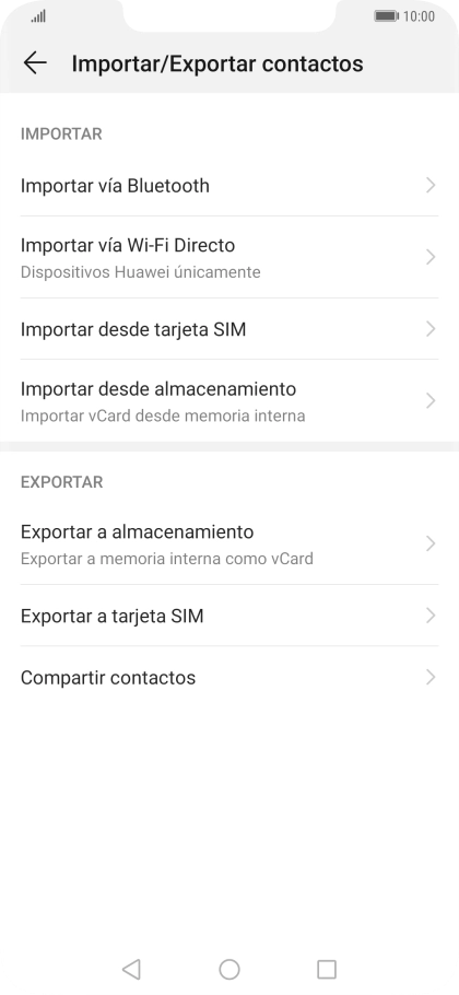 Copia contactos entre la tarjeta SIM y el Huawei Mate 20 Pro Android 9.0