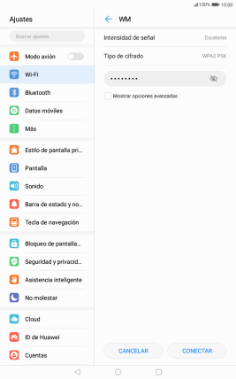 Si la red wifi está protegida con una contraseña, aparecerá un icono de candado junto al nombre de la red wifi. El administrador o el proveedor de red te puede proporcionar la contraseña.