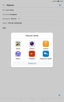 Pulsa el icono de envío cuando termines de escribir el correo electrónico.