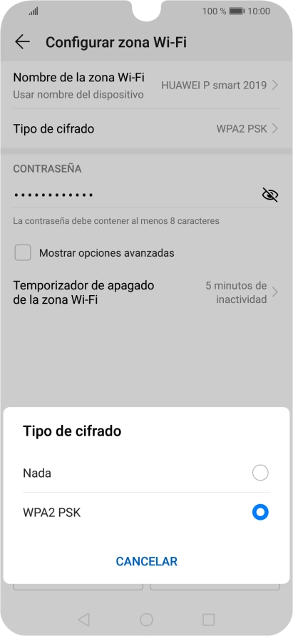 Pulsa WPA2 PSK para proteger la conexión wifi con una contraseña.