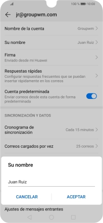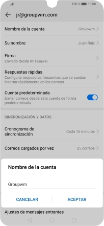 Pulsa Nombre de la cuenta e introduce el nombre de la cuenta de correo electrónico.