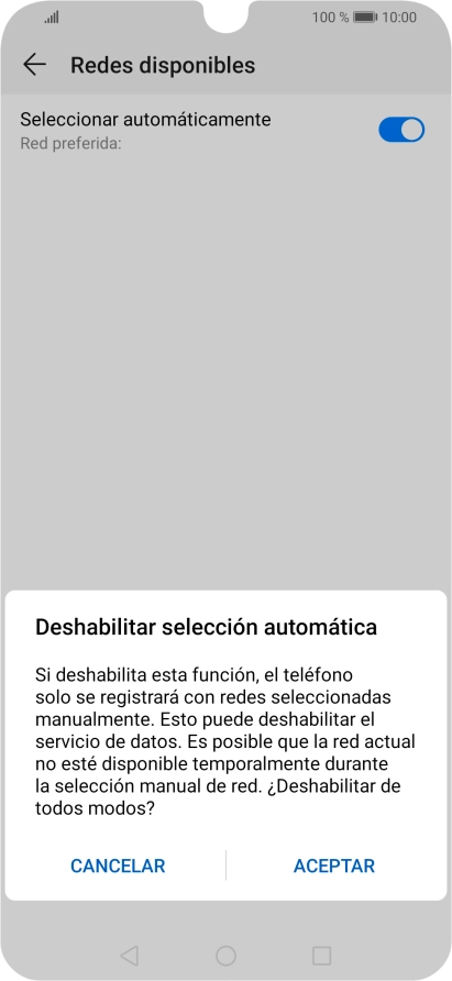 Si quieres seleccionar la red de forma manual, pulsa el indicador junto a "Seleccionar automáticamente" para desactivar la selección automática.