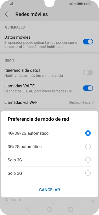Pulsa Tipo de red preferido.
