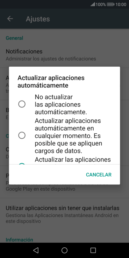 Para desactivar la actualización automática de apps, pulsa No actualizar las aplicaciones automáticamente..
