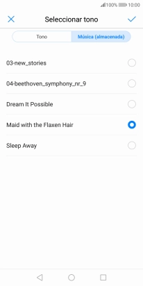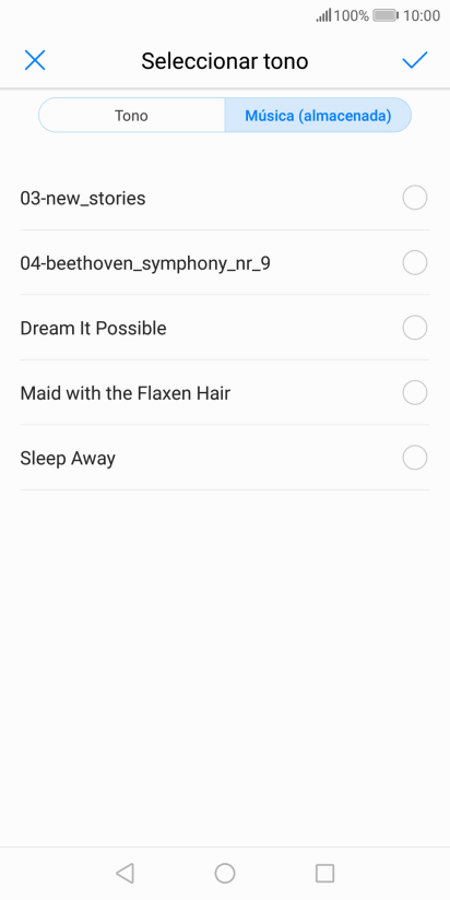 Al encontrar un timbre de llamada de tu gusto, pulsa el icono de aceptar.