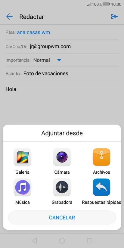 Pulsa el icono de envío cuando termines de escribir el correo electrónico.