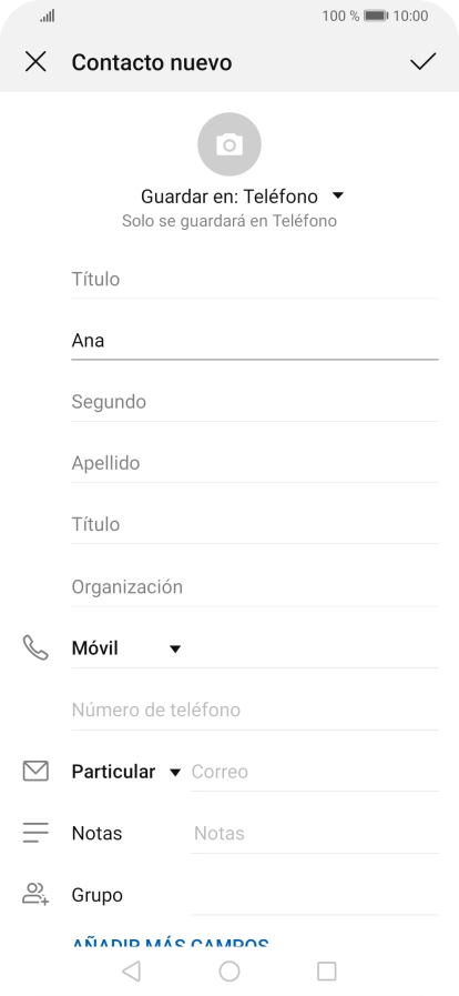 Sigue las indicaciones de la pantalla para añadir más información como, por ejemplo, la dirección de correo electrónico y el timbre de llamada personal.