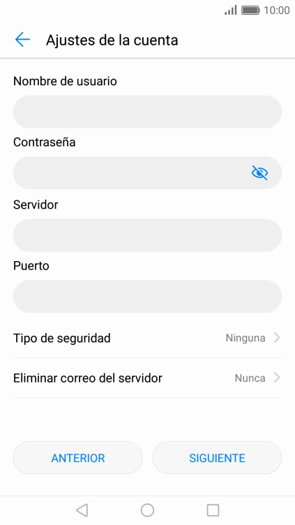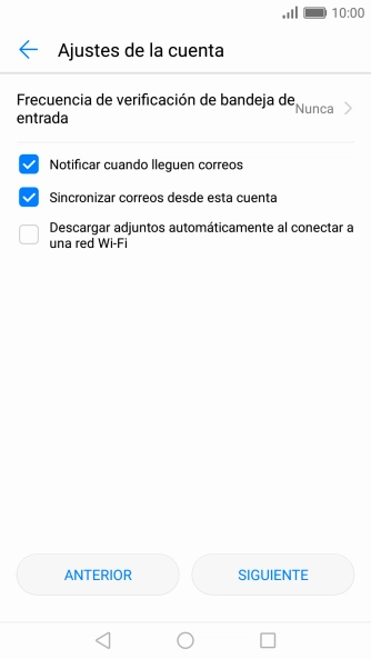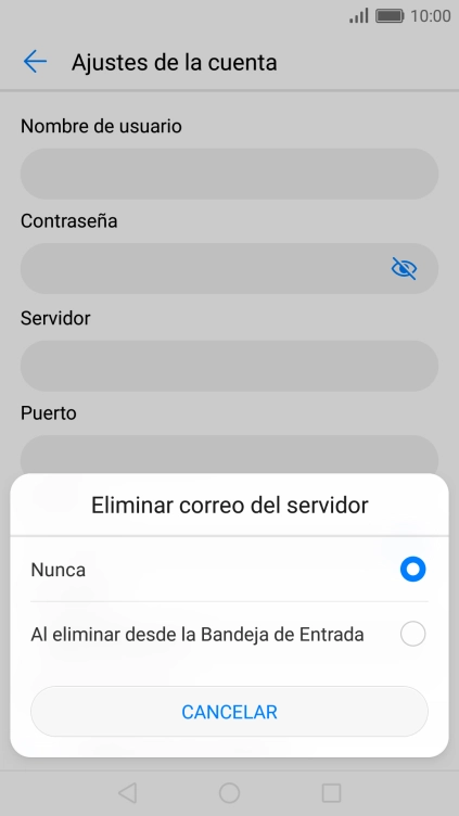 Pulsa Nunca para conservar los correos electrónicos en el servidor cuando los borras del teléfono.
