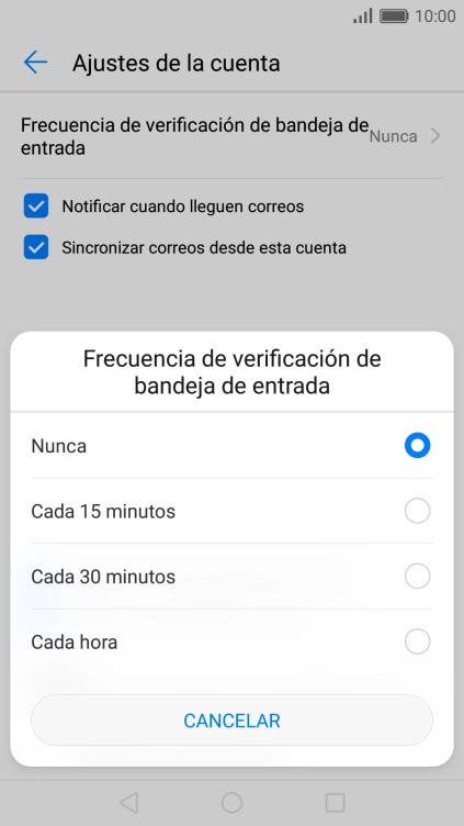 Pulsa Frecuencia de verificación de bandeja de entrada.