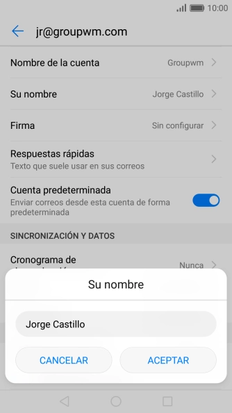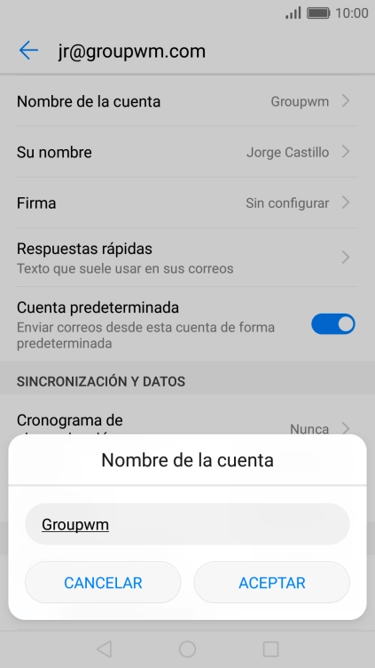 Pulsa Nombre de la cuenta e introduce el nombre de la cuenta de correo electrónico.