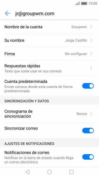Pulsa Sincronizar correos desde esta cuenta para activar la función.